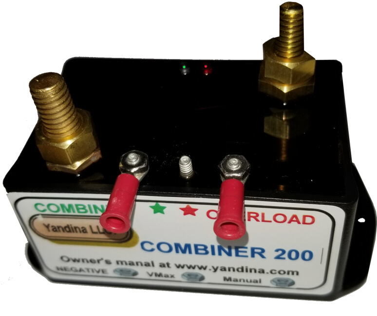 The Combiner 200 is a voltage-sensing relay (13.1 volts) which connects two batteries together when either is receiving a charge. When the charging ceases, the relay opens so that each battery operates independently. Supplemental battery banks can be added by using an additional combiner for each bank. You never have to worry about switching to "BOTH" when your engine is running and forgetting to switch back to save your starting battery from discharge when you stop. For alternators greater than 200 amps use the Combiner 600 |